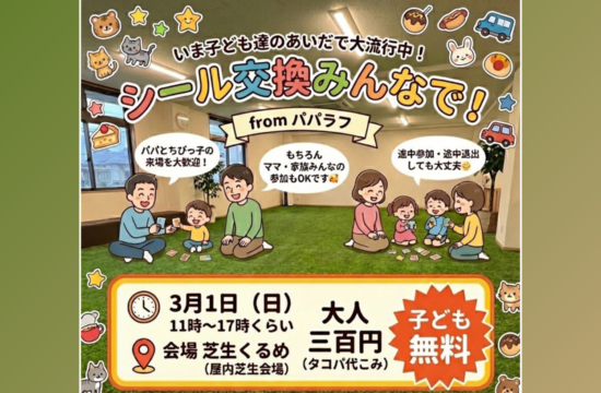 パパラフ主催の、楽しいシール交換会です。時間内で出入自由です。タコパ(…
