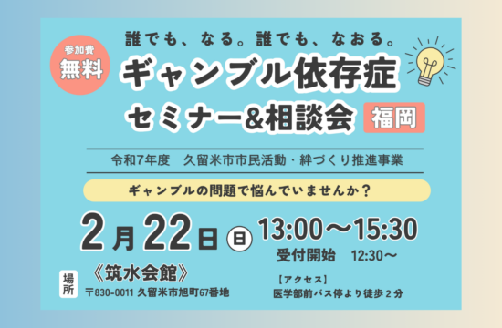 ギャンブルの問題で悩んでいませんか?対応の仕方や回復の方法を学べるセミ…