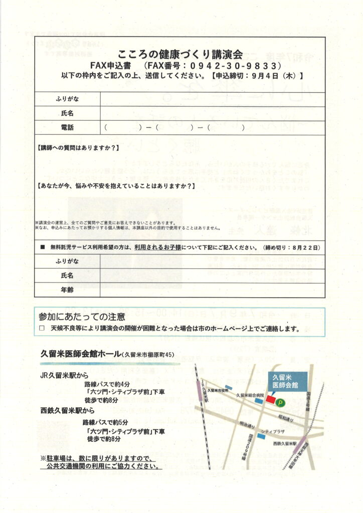 ■場所:久留米医師会館ホール(久留米市櫛原町45)
