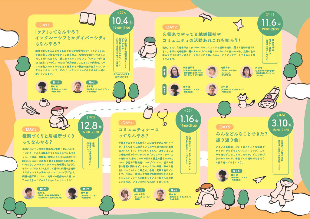 地域福祉やケア、コミュニティづくりなどを学び、小さく実践していく全5回の連続ゼミが開催されます。ただいま研究員を募集しています。