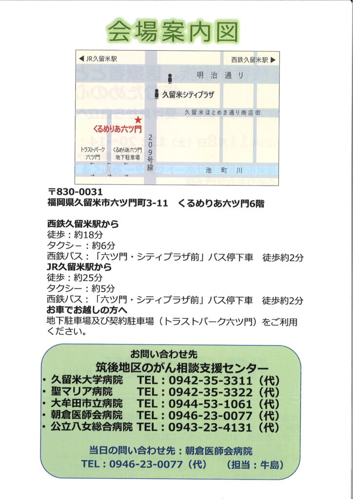 〇事務局:久留米大学病院 がん相談支援センター(0942-35-3311)