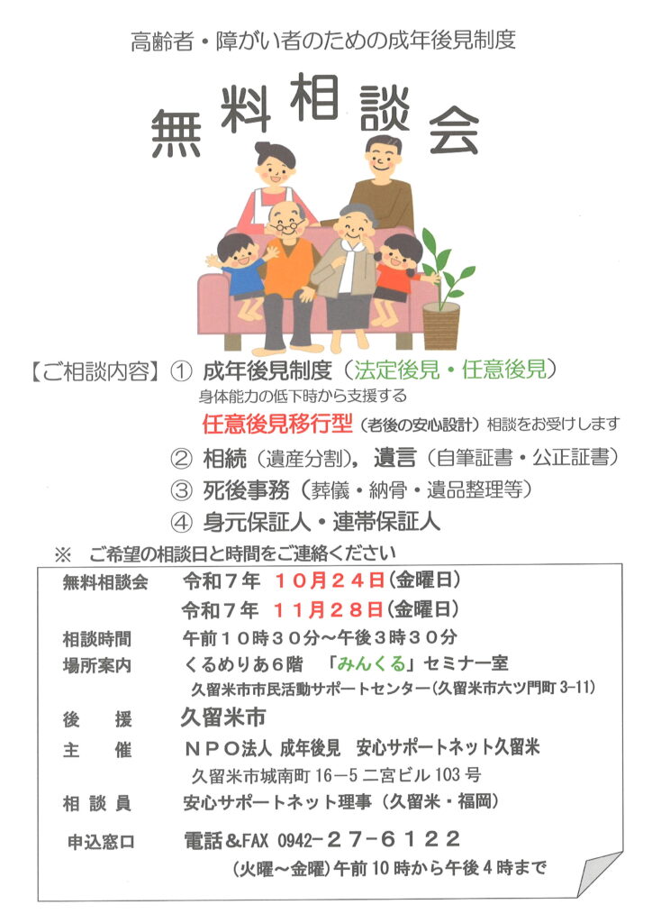 ■ 主催:特定非営利活動法人 成年後見 安心サポートネット久留米
