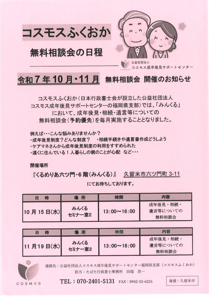 10/15・11/19 コスモスふくおか無料相談会