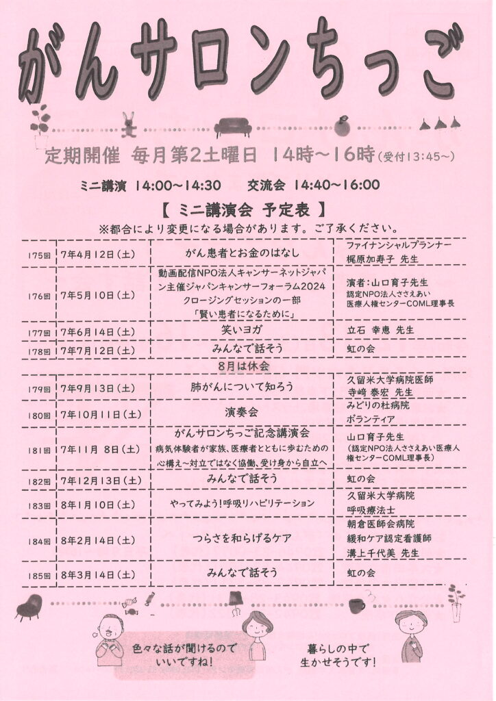 〇事務局:久留米大学病院 がん相談支援センター(0942-35-3311)
