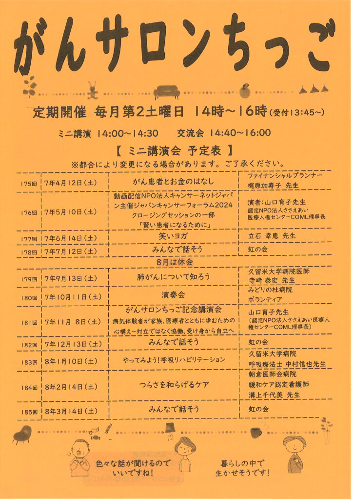 〇主催:筑後ブロックがん相談支援センター連絡協議会/患者団体:がんサロンちっご「虹の会」