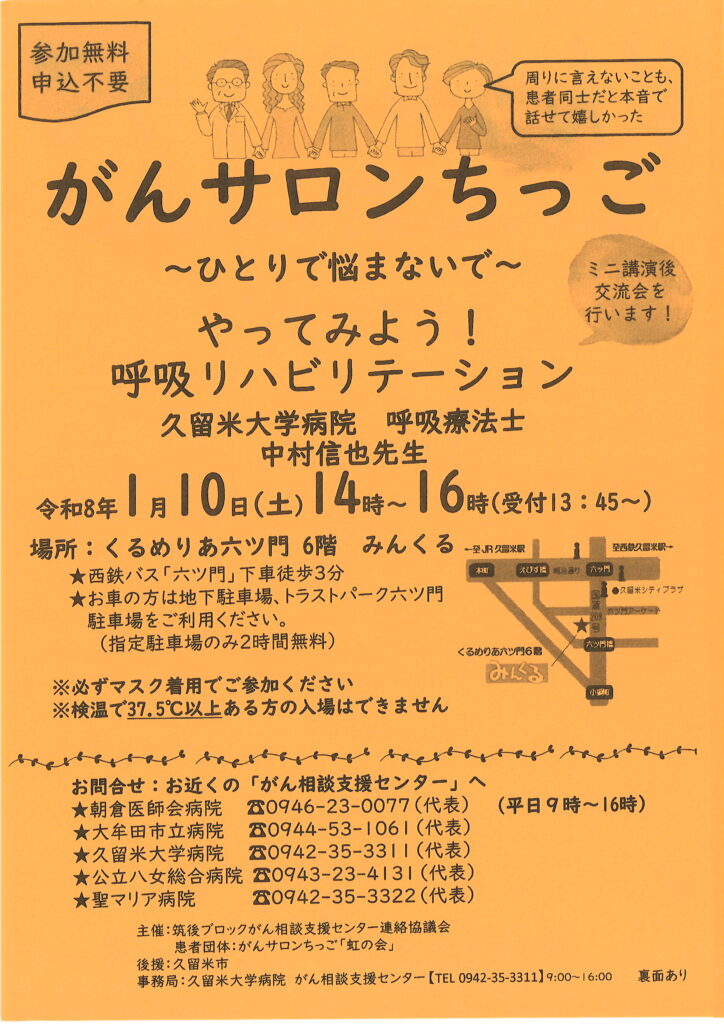 〇事務局:久留米大学病院 がん相談支援センター(0942-35-3311)