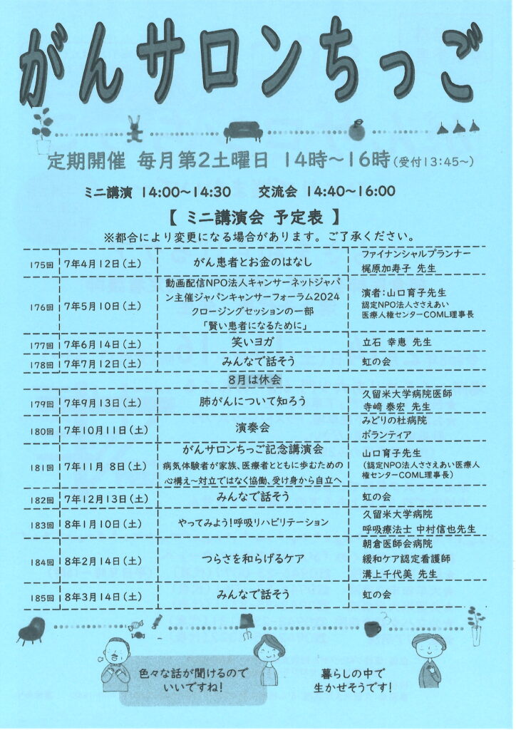■ 主催:筑後ブロックがん相談支援センター連絡協議会/患者団体:がんサロンちっご「虹の会」