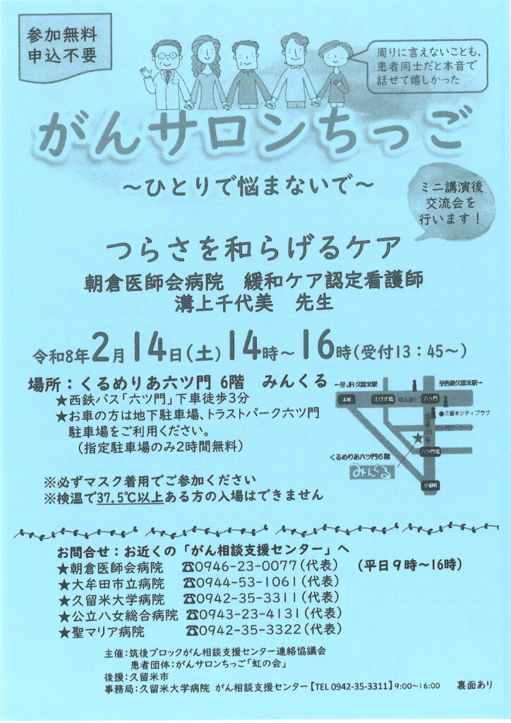 ■ 事務局:久留米大学病院 がん相談支援センター TEL:0942-35-3311(9:00~16:30)