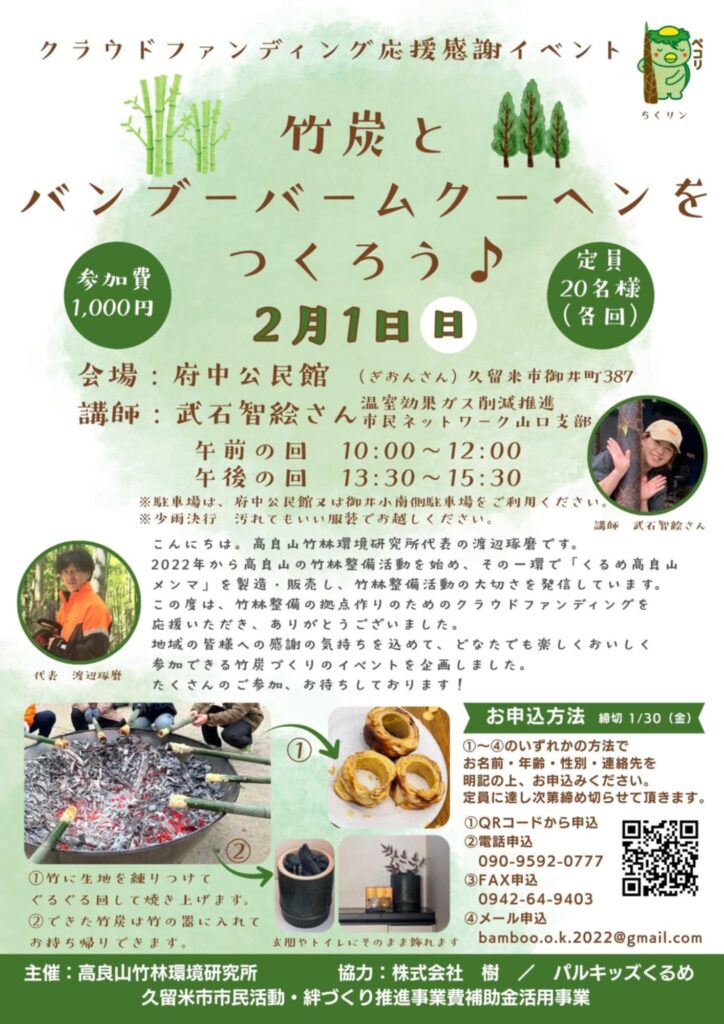 どなたでも楽しくおいしく参加できる竹炭づくりのイベントのご案内です。