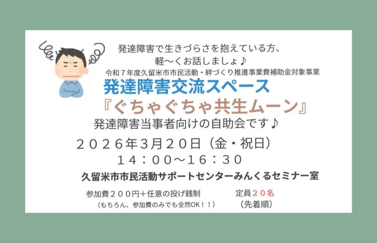 ■ 主催:発達障害交流スペース『ぐちゃぐちゃ共生ムーン』(福岡県久留米市)