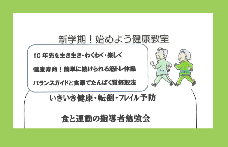 健康維持や、転倒・フレイル予防のための食と運動の指導者勉強会が開催されます。