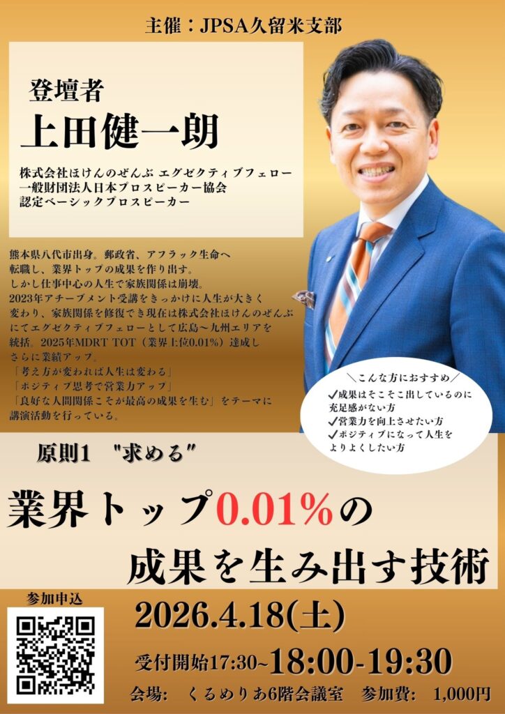 ■ 主催:一般財団法人 日本プロスピーカー協会 久留米支部