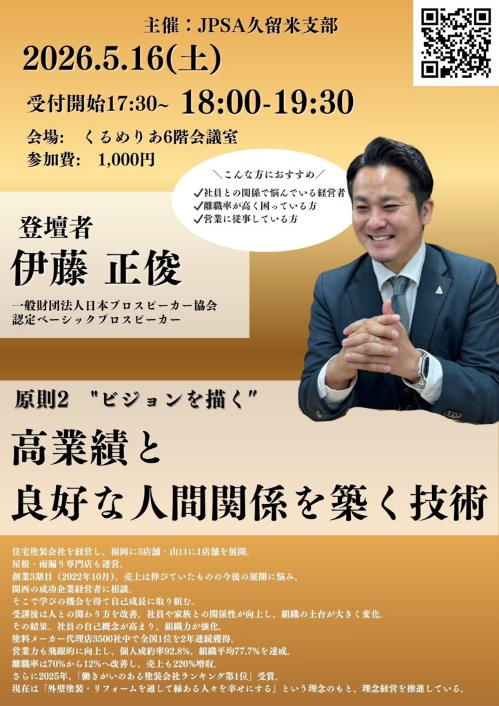 ■ 主催:一般財団法人 日本プロスピーカー協会 久留米支部
